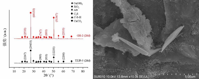 150MPa风电灌浆料28天XRD图 150MPa风电灌浆料28天SEM图