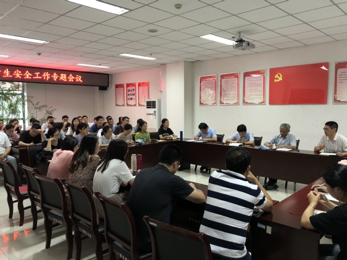 6月15日下午,学校在行政楼第一会议室召开学生安全工作会议。教务处副处长储忠、王仁宝,学生处副处长张应杰和全体辅导员参会,会议由校党委委员、学生处处长朱涛主持。