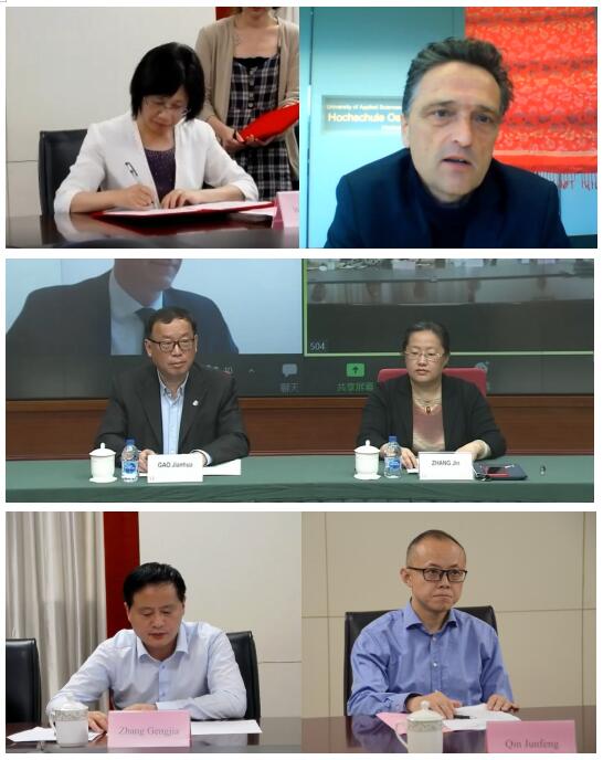 Anschließend unterzeichneten die Leiter der drei Hochschulen die Kooperationsvereinbarung und es wurden jeweils die Eröffnungszeremonie der Yangtze River Delta Base und der German Base der Sino-German Open Online Learning Platform durchgeführt. Schließlich riefen die drei Parteien das duale System Online- und Offline-Ausbildung ins Leben.