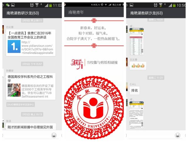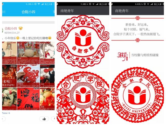 学校的发展是合肥学院人共同的目标企盼,值猴年新春佳节来临之际,学校教职员工、五湖四海的同学们在家乡、在旅途、在全球各地,通过微信、微博、QQ等不同的通讯软件,时刻关注着祖国腾飞,社会变迁和学校发展,将过年的热闹红火气氛传递共享,进行了欢度新春佳节相关的传统文化习俗的广泛普及宣传,开展了心系祖国腾飞、情牵合院发展等主题讨论和祝福留言活动,为学校献上最真诚的新春祝福!