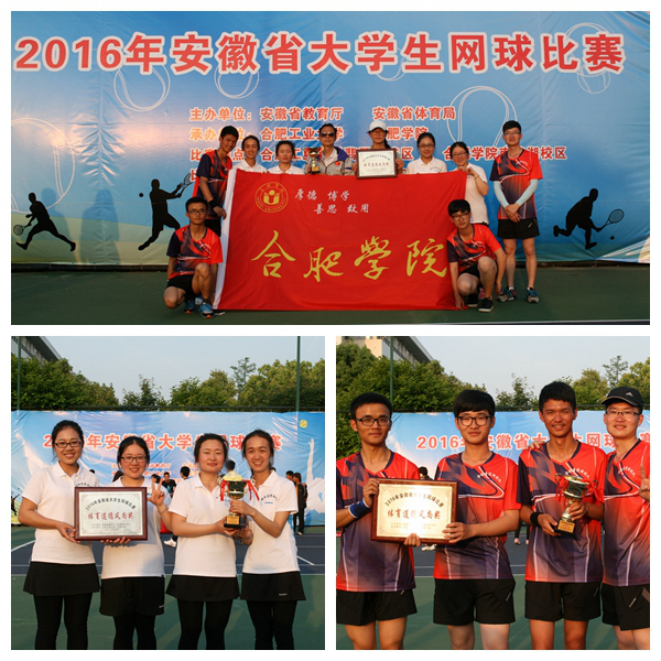 2016年安徽省大学生网球比赛于4月30日圆满落下帷幕,我校网球队不负众望、披荆斩棘,在安徽省众多高校中脱颖而出,取得一系列优异的成绩,其中王路路同学更是勇夺女单桂冠。