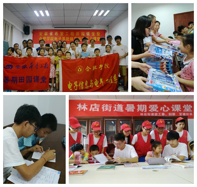 在庐阳区有着一个保持了十多年的特殊课堂,在寒暑假期间,周围的居民们总爱将自己的孩子送到这个免费的特殊课堂内。这间课堂没有专业的老师,没有专门的课桌椅,只有一群具有责任心、饱含爱心的大学生。这些年里,大学生志愿者因毕业等原因换了一批又一批,但社区的孩子们却始终喜爱着这个大课堂。这个课堂就是由合肥学院电子信息与电气工程系志愿者与林店街道共同组织创立的。