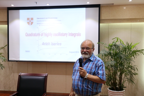 据悉,Arieh Iserles教授是国际著名数值分析学家、剑桥大学终身教授、国际著名期刊《Acta Numerica》,《Foundations of Computational Mathematics》,《IMA Journal of Numerical Analysis》的主编,以及国际著名计算数学期刊《Numerische Mathematic》, 《Advances in Computational Mathematics》的编委,在高振荡数值分析、微分方程的数值解法、几何数值积分、逼近论等领域的研究和创新方面做出了卓越的贡献。