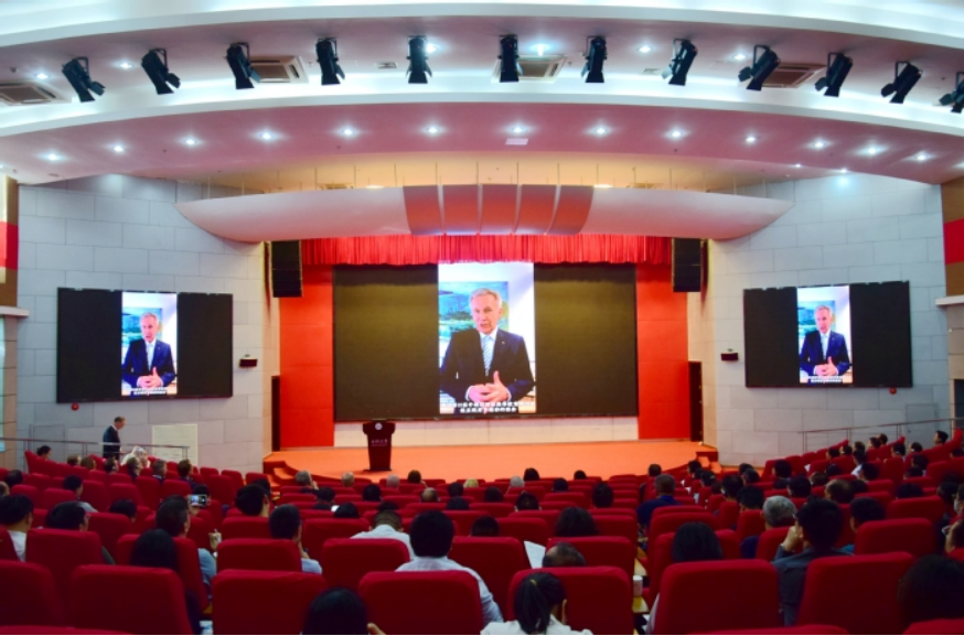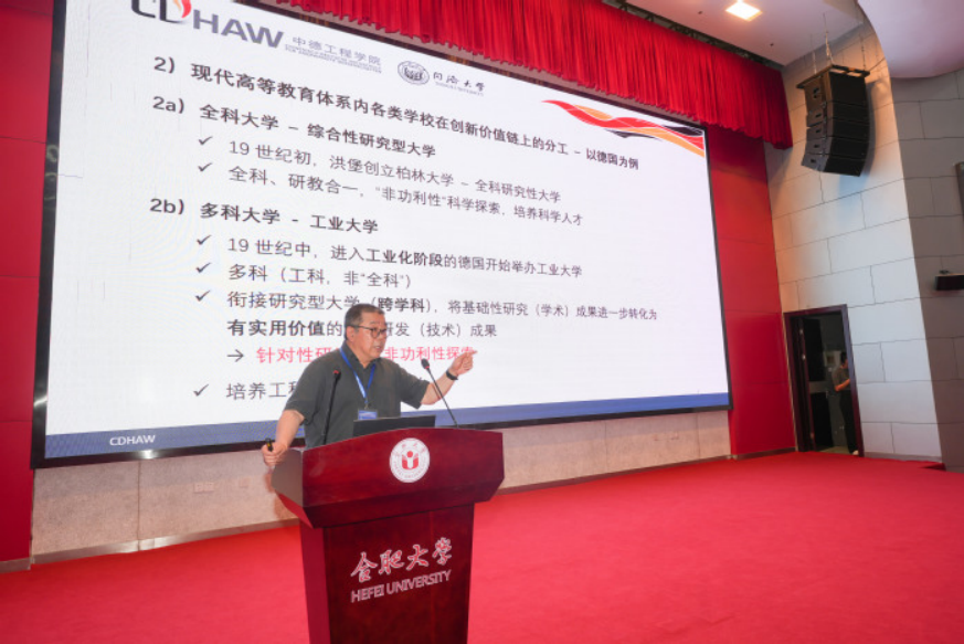 Feng Xiao, Dekan der Chinesisch-Deutschen Hochschule für Angewandte Wissenschaften (CDHAWder Tongji Universität, präsentierte einen Bericht mit dem Titel „Integration von Wissenschaft und Technik, Zusammenführung von Industrie und Bildung: Aufbau von Mechanismen für eine gegenseitig unterstützende und interaktive Innovation in Hochschulen“.
