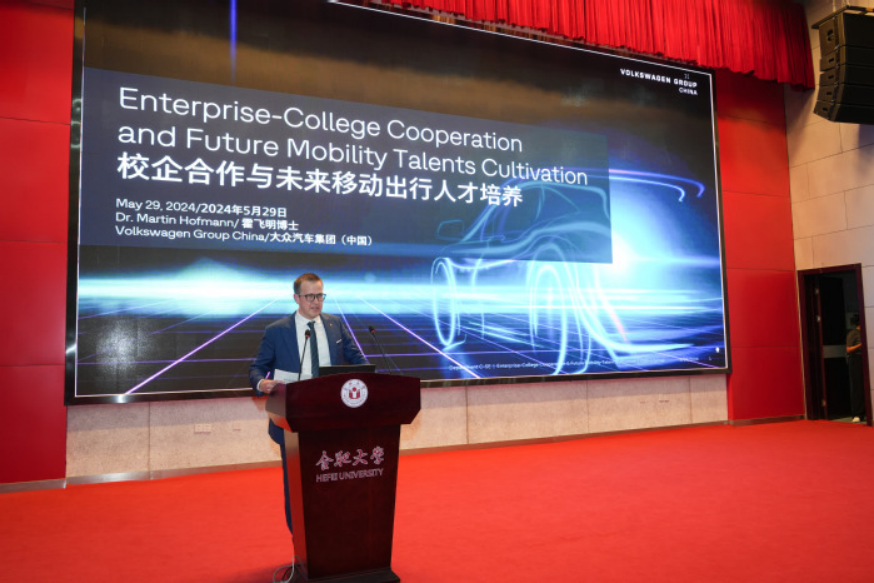 Martin Hoffmann, Executive Vice President der Volkswagen Group (China), sprach über „Enterprice-College Cooperation and Future Mobility Talents Cultivation“.