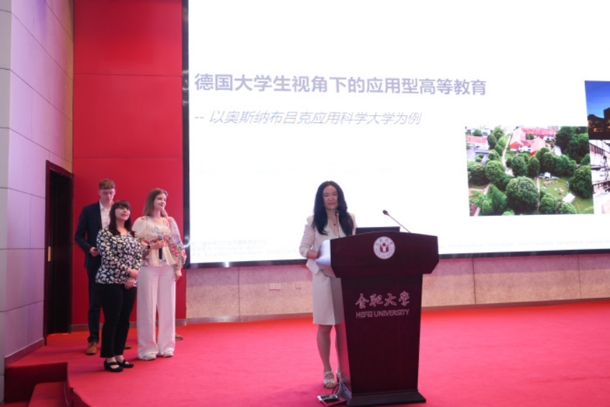 Professor Chen Ying von der Hochschule Osnabrück und ihr Team analysierten das Thema „Angewandte Hochschulbildung aus der Sicht deutscher Studenten“ und präsentierten die Entwicklungsergebnisse der deutsch-chinesischen dualen Hochschulbildung.